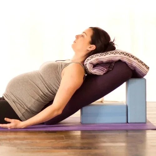 Full-Size Bolsters offer the most support for seated or reclining positions. The pranayama Bolster (smaller size) is also a great option for side-lying savasana during pregnancy.